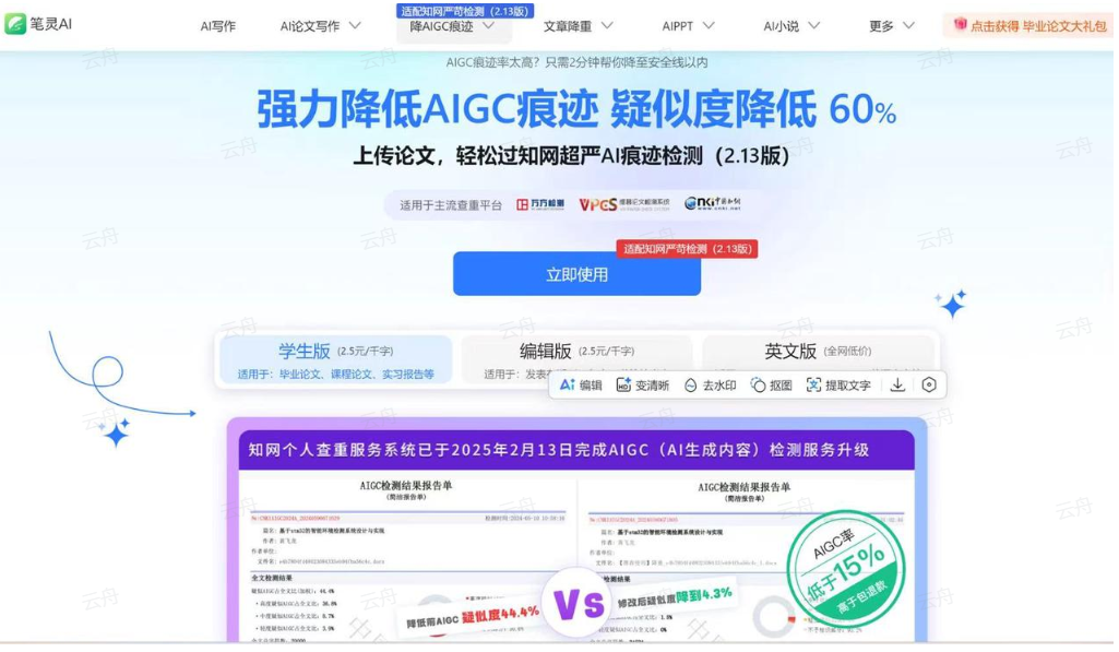 直达链接:ai论文降重查重 | AI痕迹检测去除 | AIGC查重网站 | 笔灵AI助手