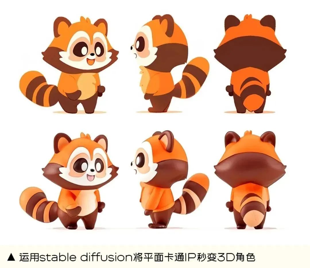 除了上述的线稿转 3d 场景之外,我们日常的平面 IP 卡通人物也可以通过 stable diffuson 秒变 3d