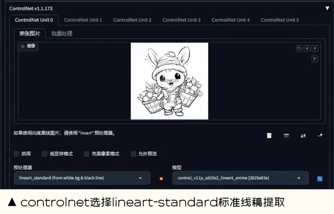 Karras,Controlnet 预处理器运用的是 lineart(标准线稿提取),模型运用的是