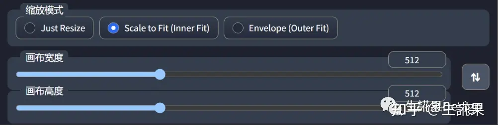 Scale to Fit (Inner Fit):调整ControlNet图像的大小以适应Txt2Image的尺寸。它将调整图像的大小,直到它能够适应Txt2Image设置的宽度和高度。