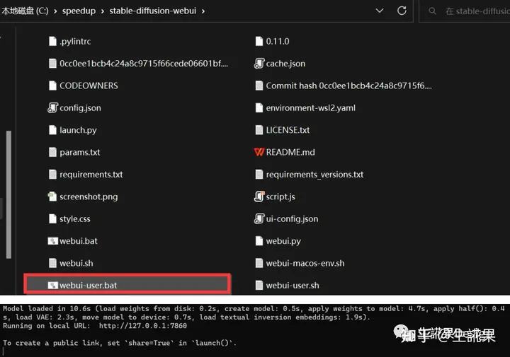 进入SD安装文件夹,双击 webui-user.bat,待其加载完成方可使用浏览器(Chrome/Edge)登录默认的加载IP http://127.0.0.1:7860/