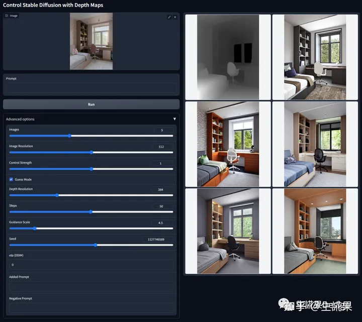 这个预处理器有助于生成输入图像的深度估计。深度通常用于控制图像内物体的空间定位。浅色区域意味着它离用户更近,而深色区域则离用户更远。
