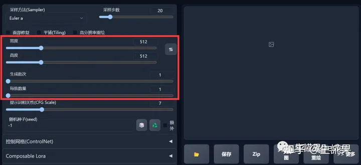 生成批次:每次生成图像的组数。一次运行生成图像的数量为生成批次 * 每批数量。