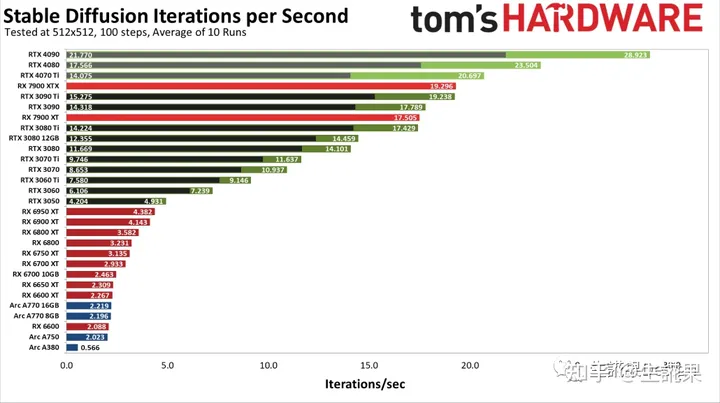 从图中可看出,与AMD或英特尔的任何产品相比,Nvidia的GPU提供了卓越的性能–有时是以巨大的优势。随着DLL修复到位,RTX 4090的性能比带有xformers的RTX 3090 Ti高出50%,而没有xformers的性能则高出43%。生成每张图片只需要三秒多。