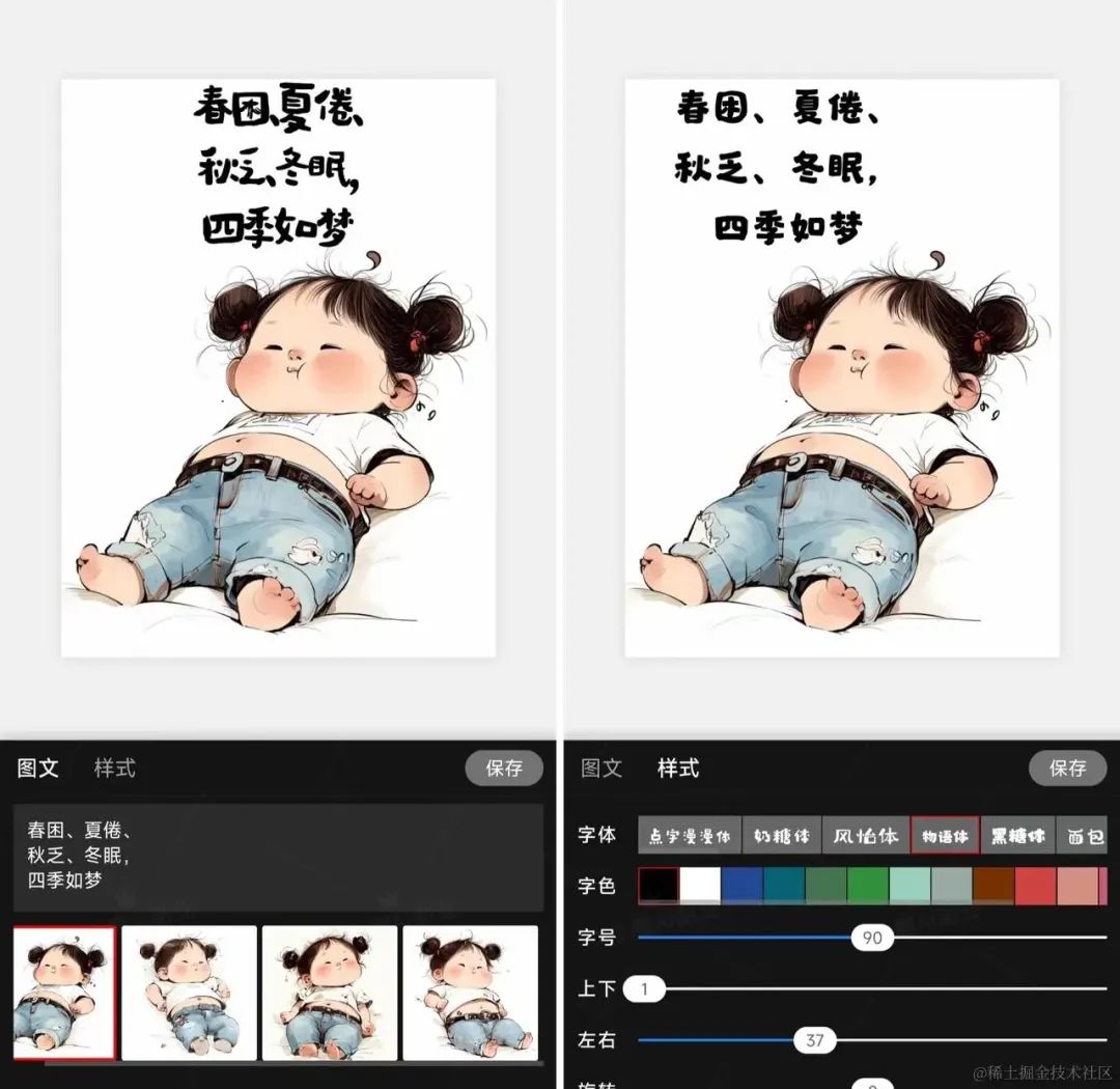 而且可以对生成后的图片进行再编辑,包括文字和样式: