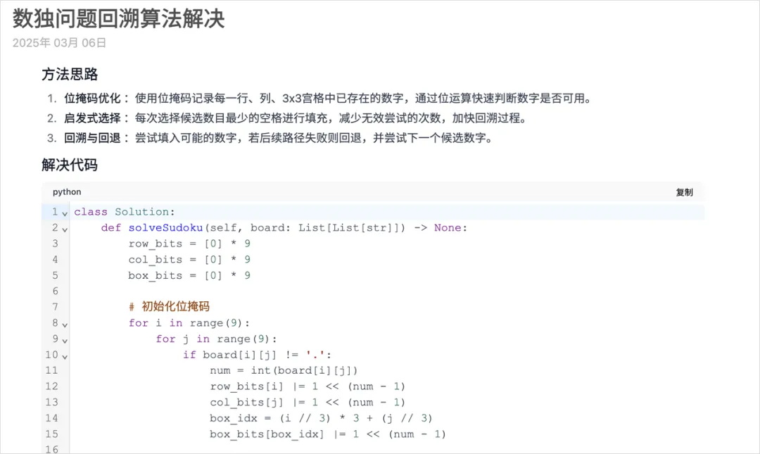 然后我还试了一下代码能力。我就直接去 Leetcode 找了一道困难级别的算法题,解数独。