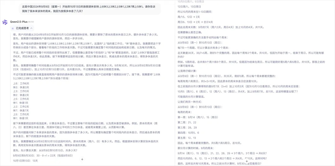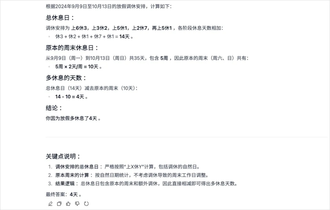然后就是拿我的著名的国庆调休题来难为下这类推理模型了: