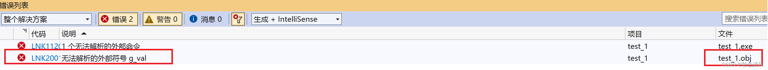 也就是说,对test_1.c进行编译的时候,对于出现的g_val在这个源文件的见面并没有进行定义,所以就会报错。