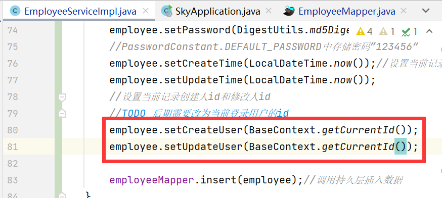 如下图使用builder方式来建造对象,前提是要在EmployeeLoginVo类上面加上@Builder注解。