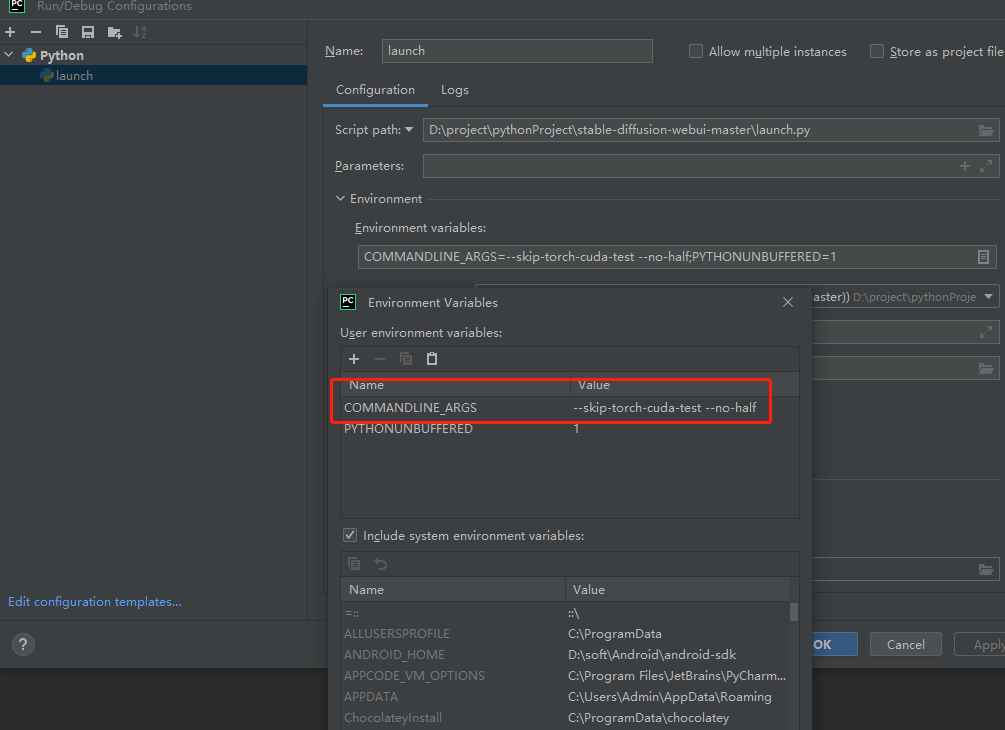 然后找到文件launch.py,右键,单击run,就可以体验快速出图效果了。
