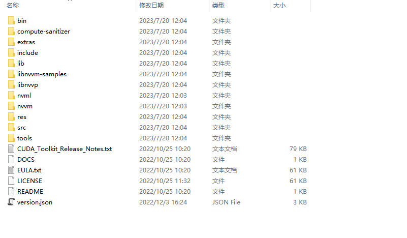 cuDNN叫配置更为准确,我们先把下载的 cuDNN 解压缩,会得到下面的文件: