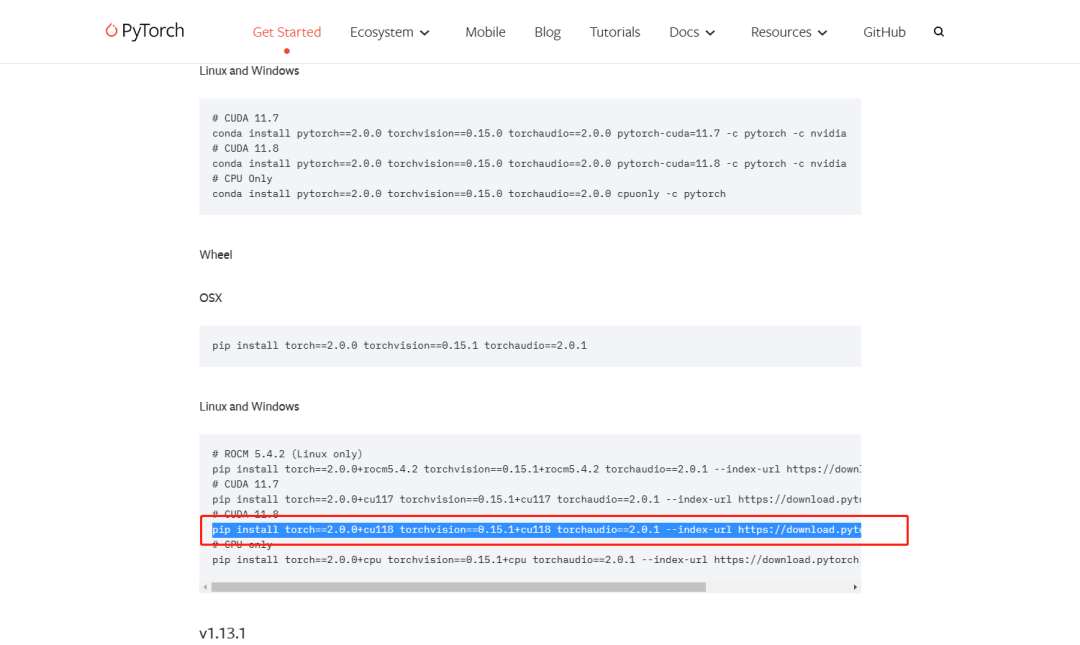 卸载完成后,安装gpu版本的torch,访问https://pytorch.org/get-started/previous-versions/找到与您CUDA版本一致的,老徐的CUDA版本是12.0,未能找到一致的。因此选择的是2.0.0
