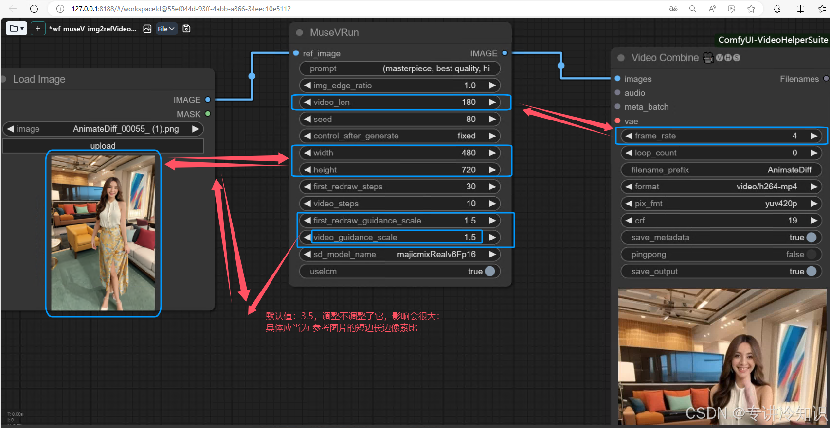 video_guidance_scale:类似于 text2image,控制 cond 和 不控制uncond 之间,影响较大,默认为3.5。详见2.2所述。 -