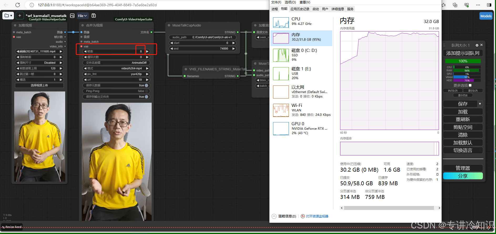 MuseV非常吃系统内存,需要特别配置好运行参数进行调优推理。