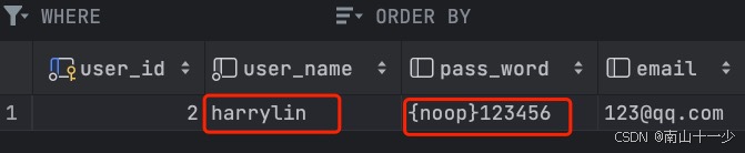 注意:因为目前还未做用户密码加密,密码是按明文存储的,所以在密码前需要加上{noop}标识