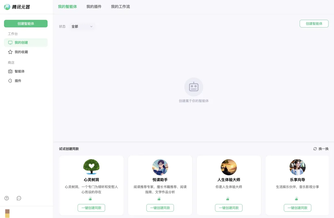 生态也是老生常谈的话题。等到大家都把智能体发布到平台上,腾讯也会一定扶持。创作者在腾讯元器上创建的智能体,可以分发到QQ,优质智能体有机会获得流量扶持。