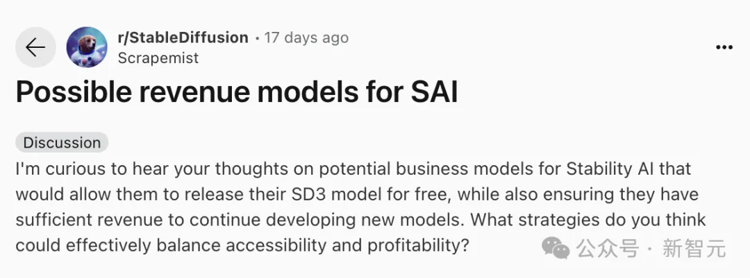 有Reddit网友在线发起了提问,为Stability AI寻求赚钱出路,以保证SD3能够顺利放出。