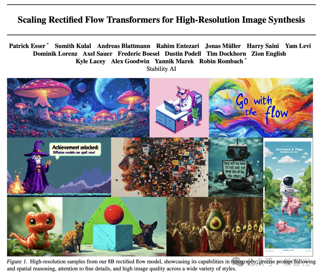 论文中,首次介绍了Stable Diffusion 3背后核心技术——改进版的Diffusion模型和一个基于DiT的文生图全新架构!