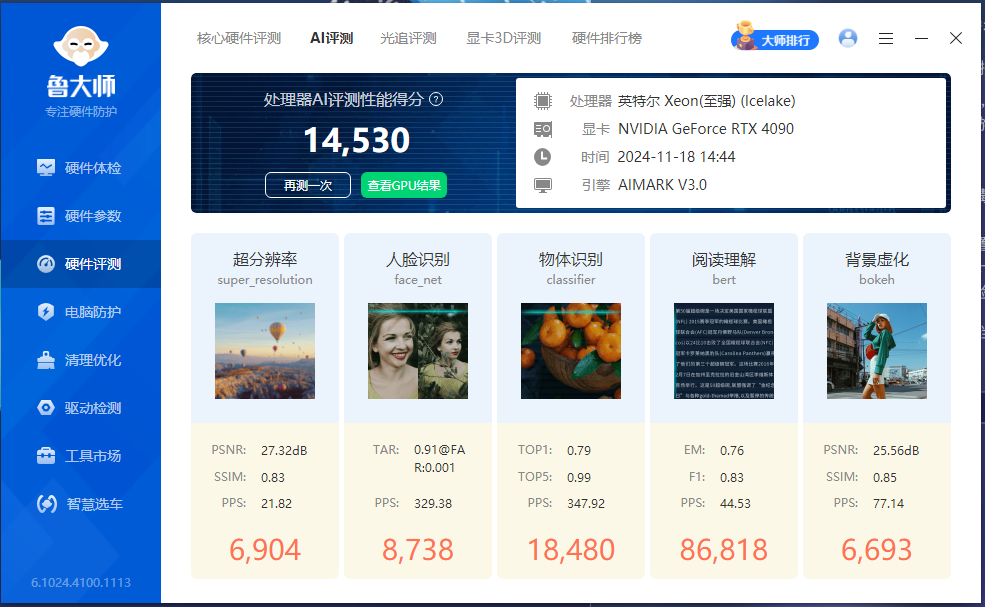 ToDesk 的 aigc 设备,4090 显卡,鲁大师的 AI 硬件能力测评跑分 14530,AI 能力评测能达到这个分数是很不错的程度。