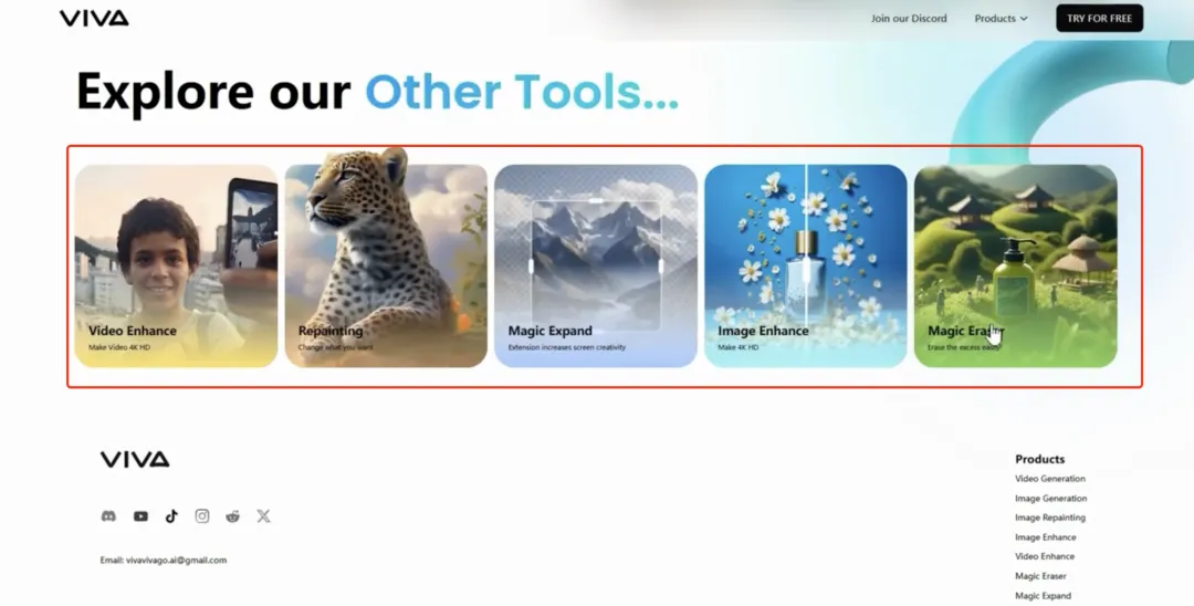 除了视频生成功能,我们还可以免费使用viva的其他工具。