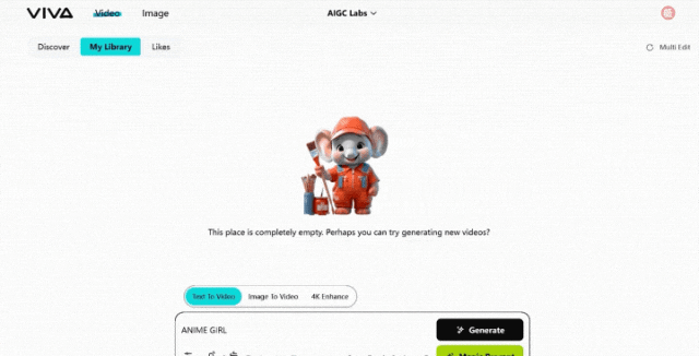 Viva支持文本生成视频、图片生成视频以及4K分辨率放大功能,每次可生成一段4秒钟的短视频。